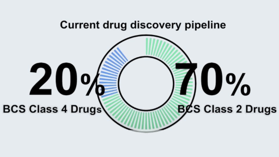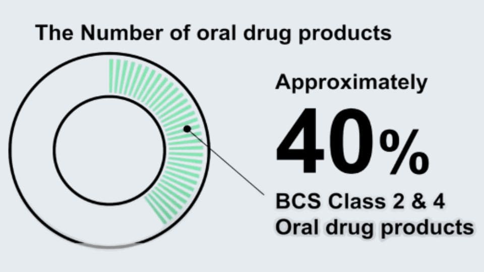 経口薬の約40%が低溶解度カテゴリー(BCS Class 2または4)に属します。