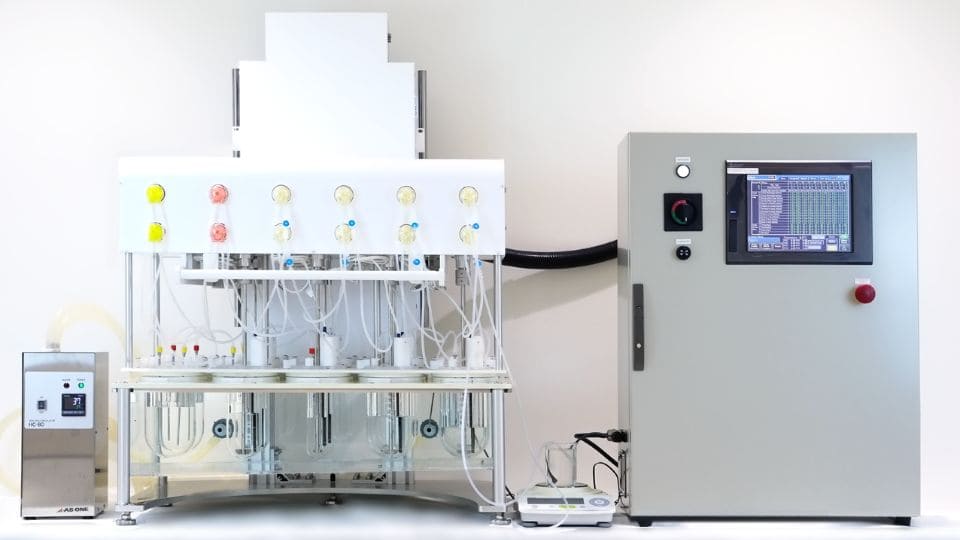 生体の機能(胃から腸へのpHの変化)を模した、トランスファーモデル予測用溶出試験器